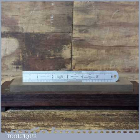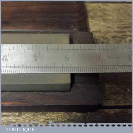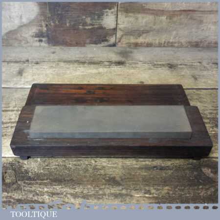Vintage 8” x 2” India oil stone in a nice mahogany box and in good used condition. Note: lapped flat ready for use.