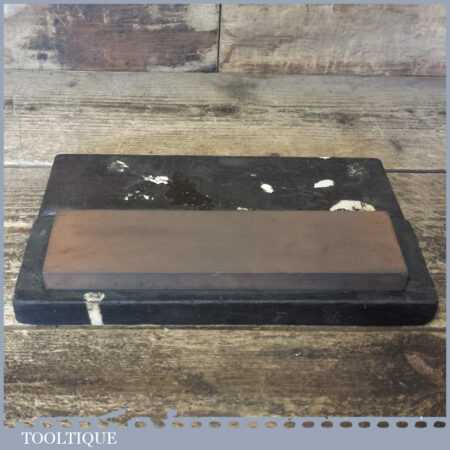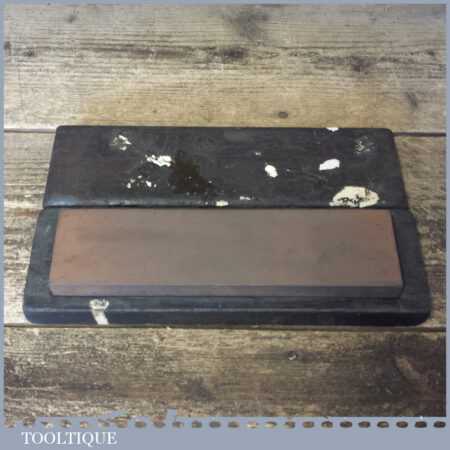 Vintage 8” x 2” India oil stone in wooden box and in good used condition. Note: lapped flat ready for use.