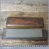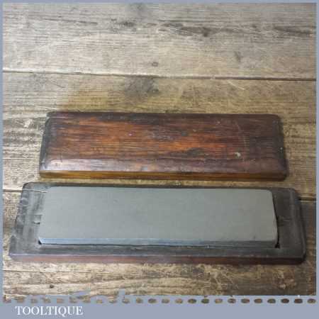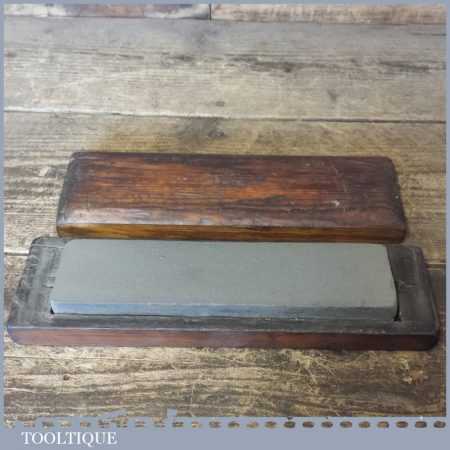 Vintage 8” x 2” medium grit Carborundum oil stone in a pine wooden box and in good useable condition.
