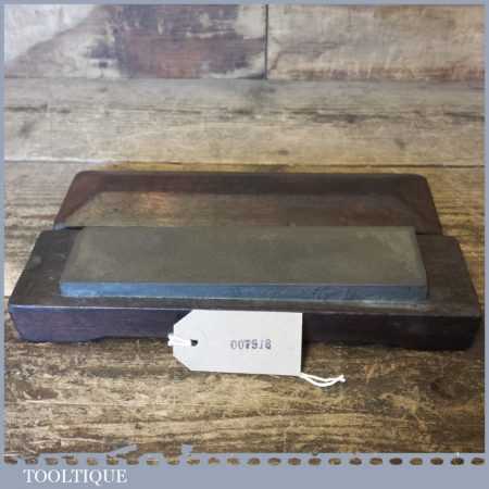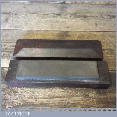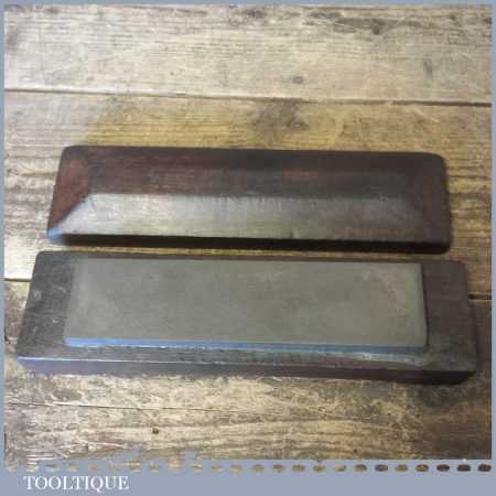 Vintage 8” x 2” medium grit Carborundum oil stone in a Mahogany wooden box in good used condition.