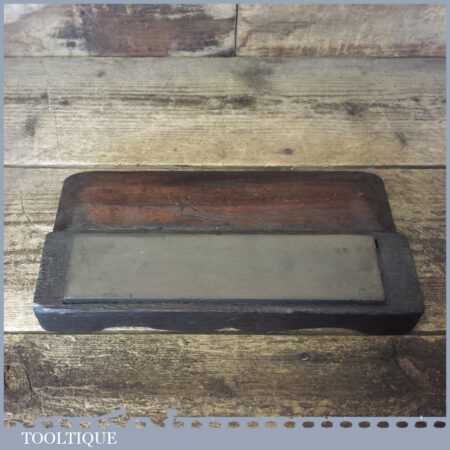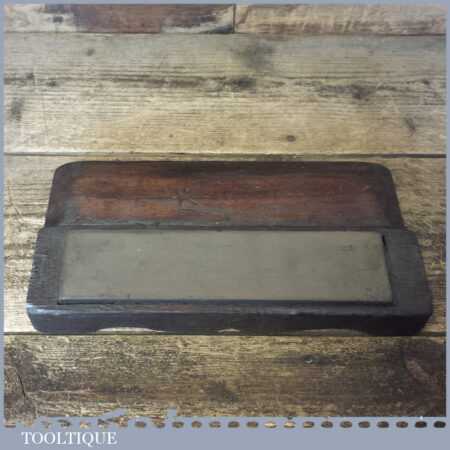 vintage approx 8” x 2” medium grit carborundum oil stone in a nice mahogany wooden box in good used condition. Note: The stone has been lapped flat ready for use.