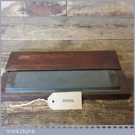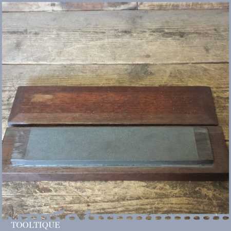 Vintage 8” x 2” medium grit oil stone in wooden box in good used condition.