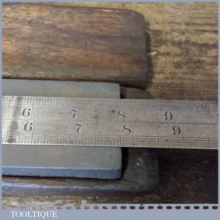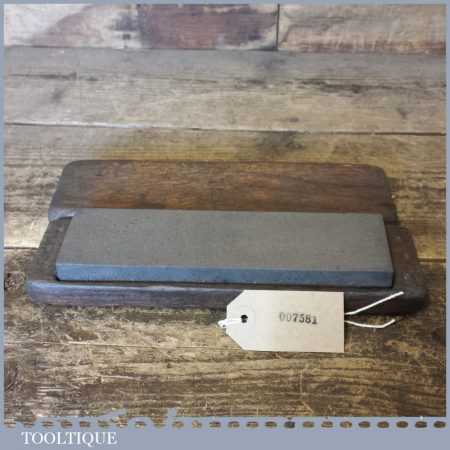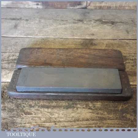 Vintage 8” x 2” medium grit oil stone in a nice old pine box and in good used condition.