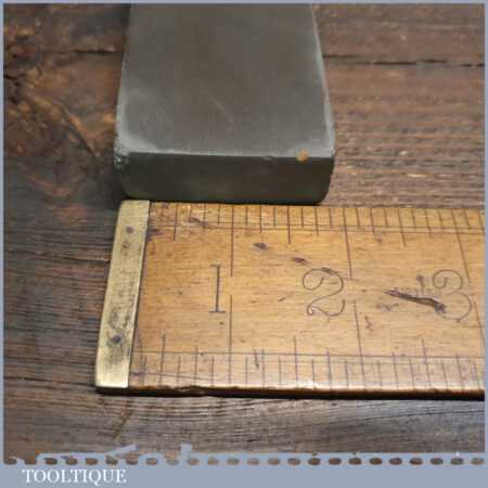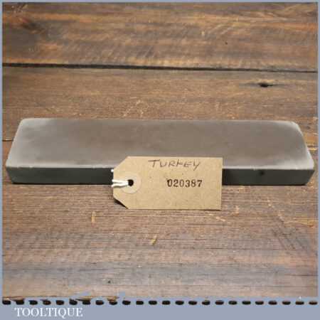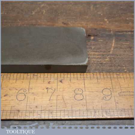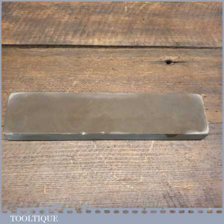 Vintage 8” x 2” natural fine honing oilstone in good used condition. Note: lapped flat ready for use. There is little to go on regarding identification but it certainly doesn’t resemble usual types we find. A nice quality very fine natural stone