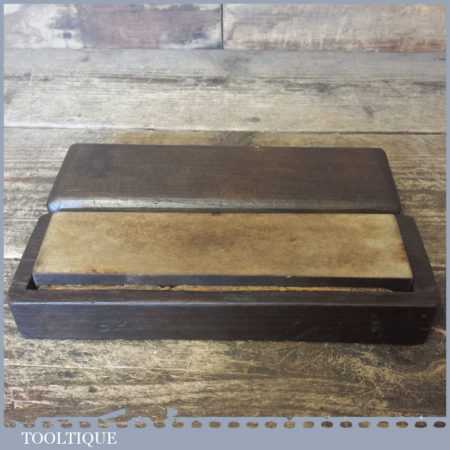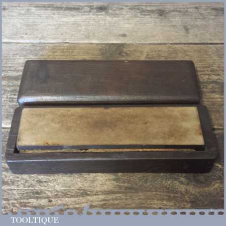 Vintage 8” x 2” natural Washita oil stone in a nice mahogany box and in good used condition. Note: this stone has been lapped flat ready for use and is approx 1” thick.