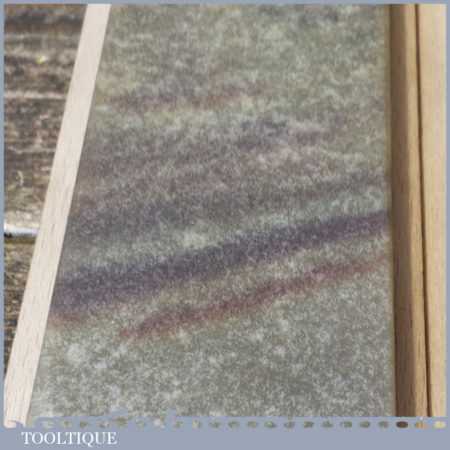 Vintage 8” x 2” natural Washita oil stone in a new beechwood box and in unused condition.
