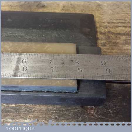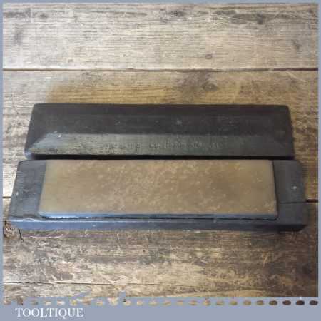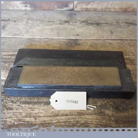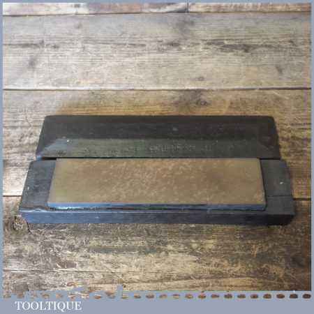 Vintage Washita oil stone in a mahogany box measuring approx 8” in length and 2” in width in good used condition. Note: this stone has been lapped flat.