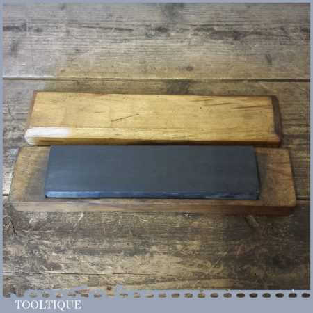 Vintage approx 8” x 2” welsh slate fine grit natural whetstone in a wooden box in good useable condition.