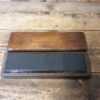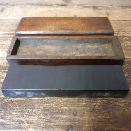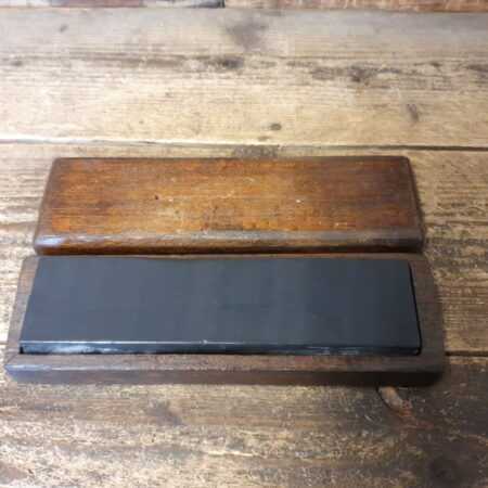 Vintage 8” x 2” x 1” Welsh slate oil stone in beechwood box and in good used condition. Note: Lapped flat ready for use.