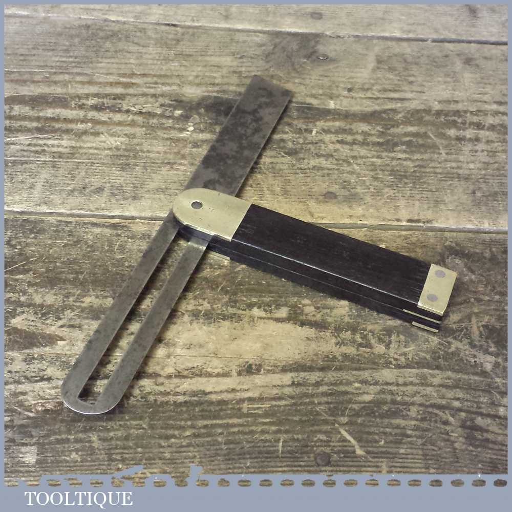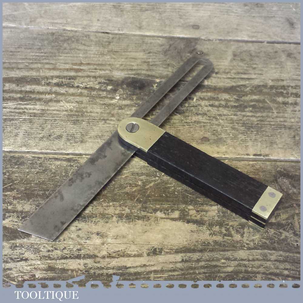 Vintage 9” brass & ebony carpenters sliding bevel in good used condition.