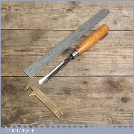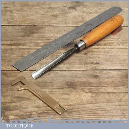 Vintage forged steel carving chisel by Herring Bros of London is in good condition and has been sharpened & honed ready for use, this prize metal straight deep chisel measures approx 9/16” wide.