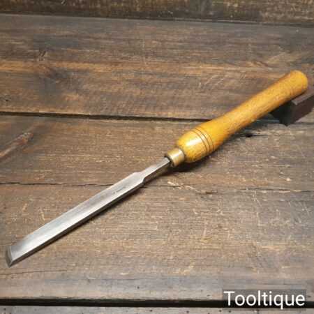 Vintage A. Hildick (diamond brand) 5/8” round nose skew woodturning chisel with beechwood handle in good used condition.