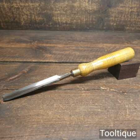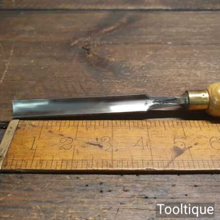 Vintage A. Hildick carpenter’s 1/2” gouge chisel with ash handle in good used condition, fully refurbished sharpened and honed ready for use.