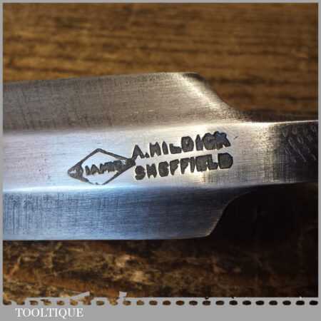 Vintage A. Hildick carpenter’s 1” bevel edge chisel with ash handle in good used condition, fully refurbished sharpened and honed ready for use.