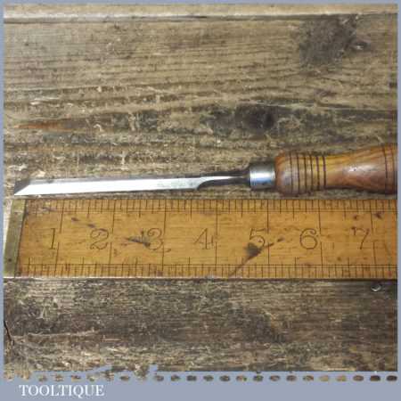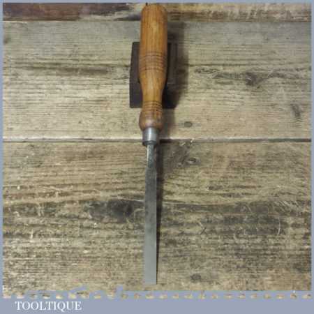 Vintage A. Hildick carpenter’s 3/8” bevel edge chisel with ash handle in good used condition, fully refurbished sharpened and honed ready for use.