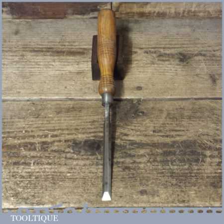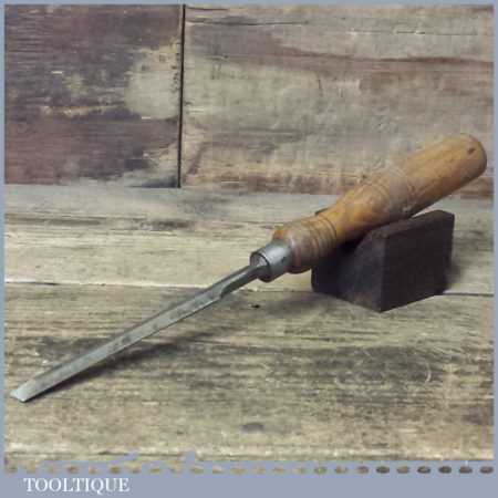 The chisel has been checked to ensure the tang is seated properly and the handle is solid and fit for use. All refurbished chisels are water cooled during the sharpening process to ensure the tempering is not affected. These old cast steel chisels are hand forged and far superior in quality because of the high carbon steel that was used which produces a keener edge, this was also generally used throughout the full length.