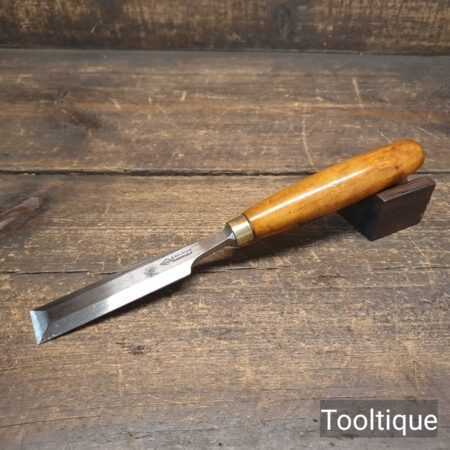 Vintage A. Hildick Sheffield 1” Bevelled Edge Chisel with a Boxwood handle, fully refurbished ready for use and in good used condition. All refurbished chisels are water cooled during the sharpening & Flattening process to ensure the tempering is not affected.