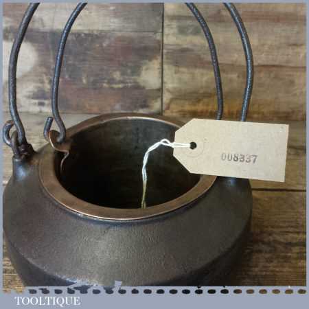Vintage A. Kenrick & Sons 1 pint cast iron glue pot with a replacement copper inner pot in good used condition. Although not 100% original the copper liner in well-made and will never perish like a cast one would.