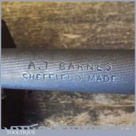 Vintage A.T. Barnes of Sheffield chefs or butchers sharpening steel with a beech wood and brass handle and hanging hook, the tool is in good used condition ready for use.