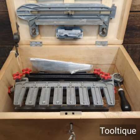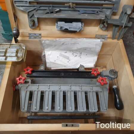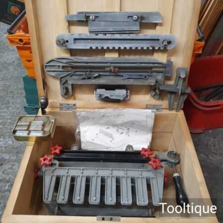 Vintage Acroy Dovetailer complete with extra parts fitted into a bespoke box (with lock and key) to house all the parts in good used condition. Note: Can only be purchased as single item for order due to weight, cannot add in other tools to order.