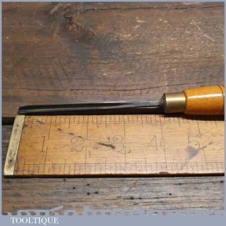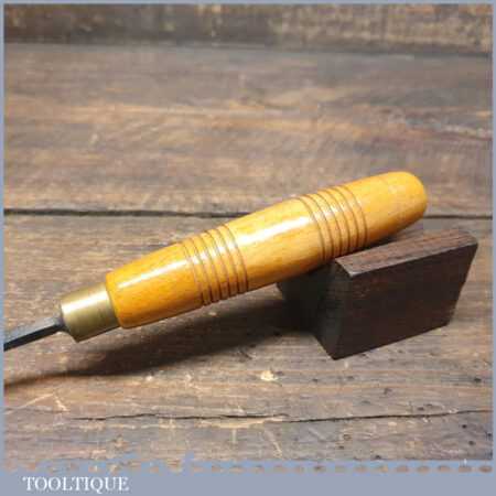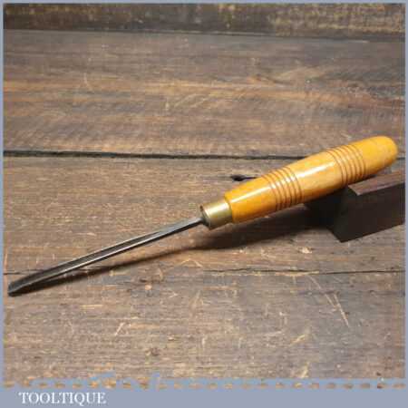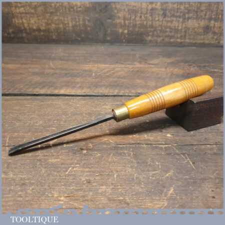 Vintage Addis 3/16” straight wood carving “V” parting chisel with beechwood handle in good used condition, fully refurbished sharpened and honed ready for use. Note: Some pitted areas up the tang.
