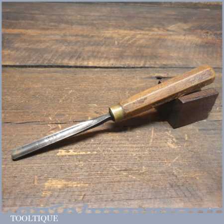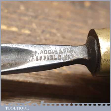Vintage Addis & Sons 3/8” straight wood carving gouge chisel with beechwood handle in good used condition, fully refurbished sharpened and honed ready for use.
