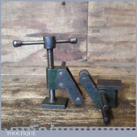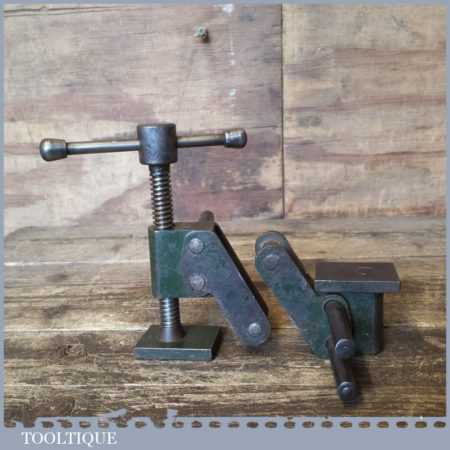 Vintage Adjustable pair of sash cramp heads in good used condition. Note: Clever design to fit different widths of wood as well as different lengths.
