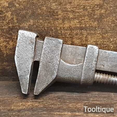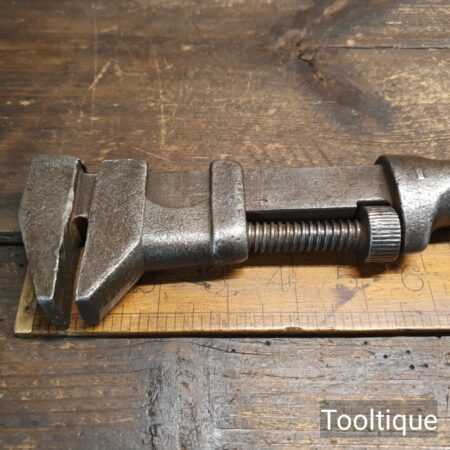 Vintage adjustable wrench with beechwood handle in good used condition, ready for use.