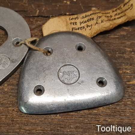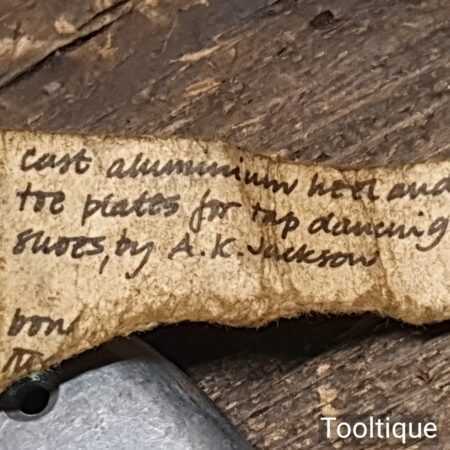 Vintage AJK cast aluminium toe and heel plates for tap dancing shoes.