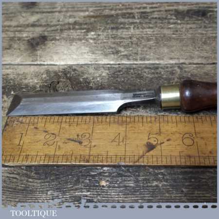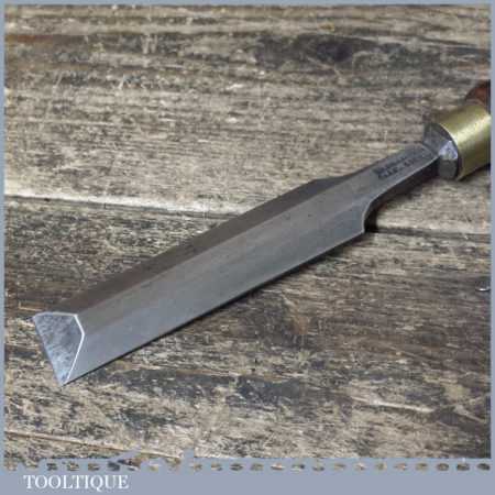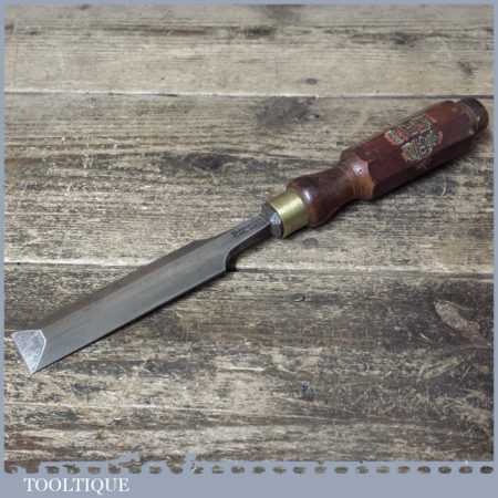 The chisel has been checked to ensure the tang is seated properly and the handle is solid and fit for use. All refurbished chisels are water cooled during the sharpening process to ensure the tempering is not affected. These old cast steel chisels are hand forged and far superior in quality because of the high carbon steel that was used which produces a keener edge, this was also generally used throughout the full length.