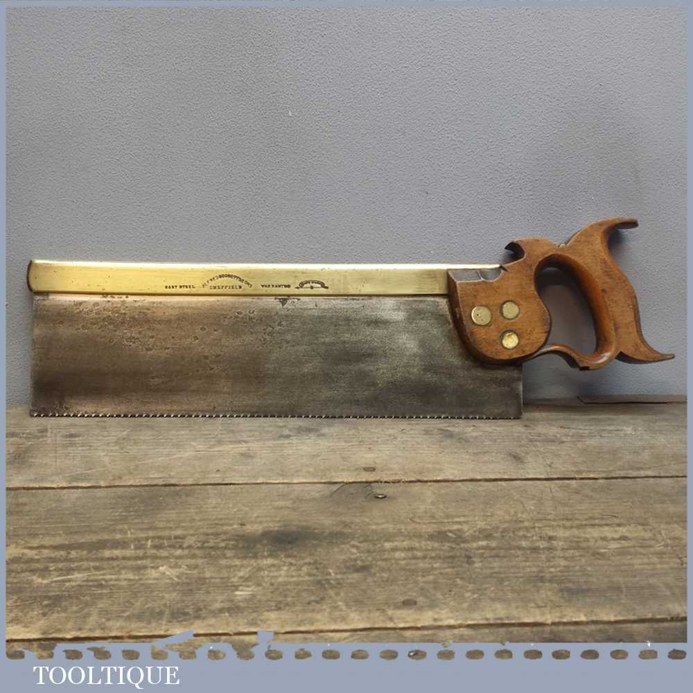Vintage Alfred Beckett & Sons of Sheffield 14” brass back bench saw in good used condition. The saw is straight and pretty sharp so cuts well and the handle is attached firmly to the blade