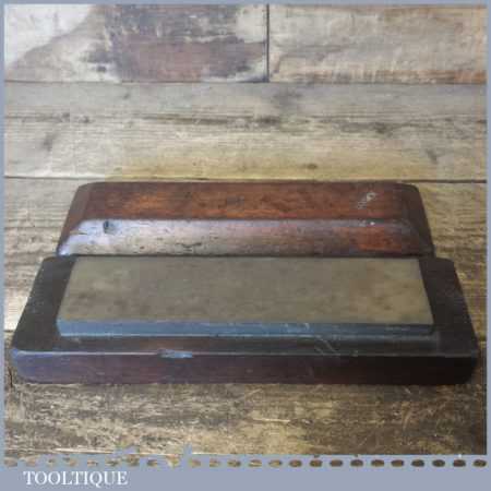 Vintage approx 8” x 2” natural Washita oil stone in a nice mahogany box and in good used condition. Note: this stone has been lapped flat ready for use.