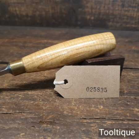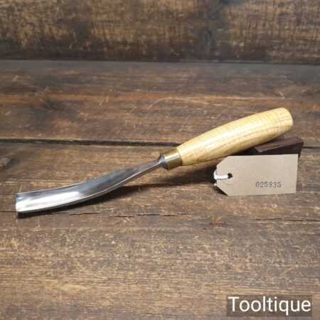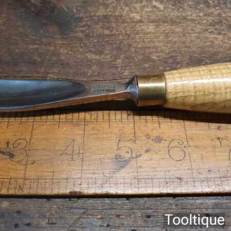 Vintage Ashley Iles of Sheffield ¾” curved gouge chisel with ash handle in good used condition, fully refurbished sharpened and honed ready for use.