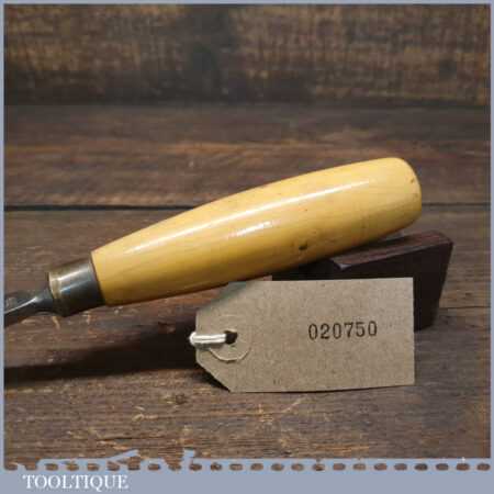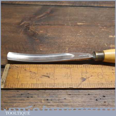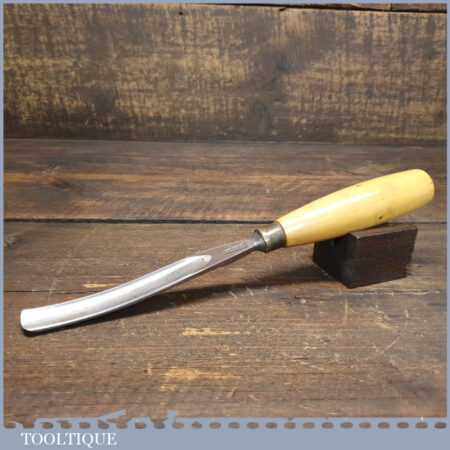 Vintage Ashley Isles 1” curved wood carving gouge chisel with boxwood handle in good used condition, fully refurbished sharpened and honed ready for use.