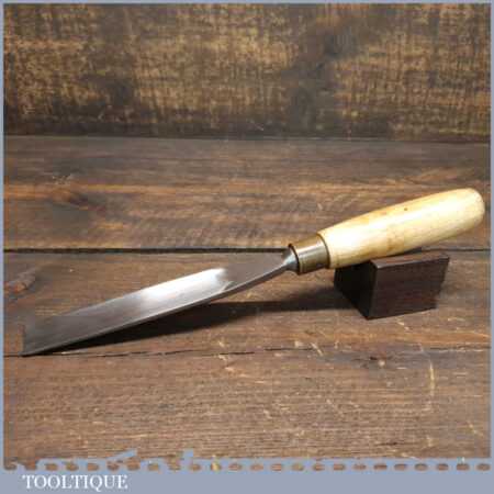 Vintage Ashley Isles 7/8” straight wood carving gouge chisel with beechwood handle in good used condition, fully refurbished sharpened and honed ready for use.