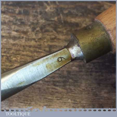 Vintage Ashley Isles No: 9 external ground 3/8” wood carving gouge chisel with beechwood handle in good used condition, sharpened and honed ready for use.