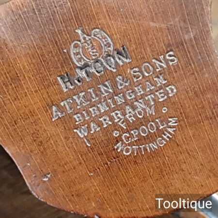 Vintage Atkins & Sons beechwood Old Woman’s tooth router plane in good used condition. Both the plane body and iron also stamped with C. Pool of Nottingham which must have been the retailer.