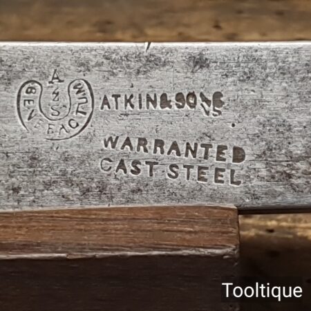 Vintage Atkins & Sons ½” Swan Neck Lock Mortice Chisel, refurbished ready for use and in good used condition. Note: Well-fitting beechwood handle.