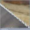 The saw has been thoroughly cleaned, jointed, resharpened and set by hand so that all the hard work of getting an old vintage saw right has been undertaken. We do this so that the next sharpening is easier and no more than a quick freshen up would be required. Those who are familiar with sharpening will know this is no small job and requires skill, effort and time to achieve good results.