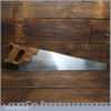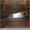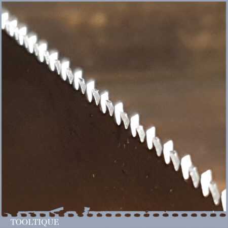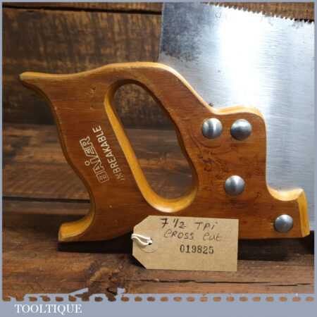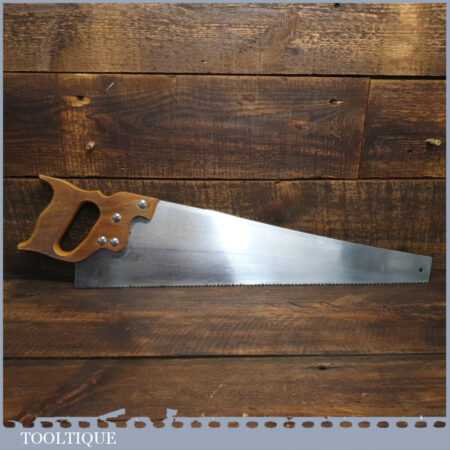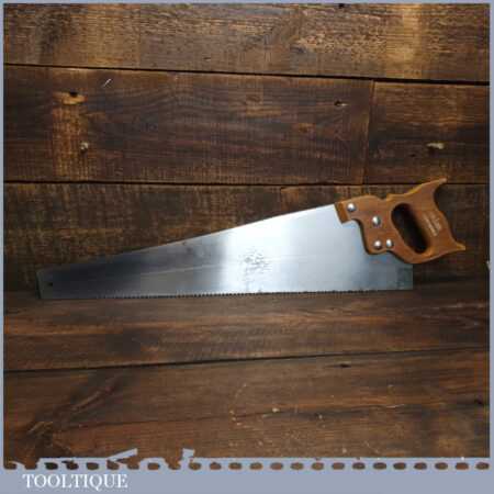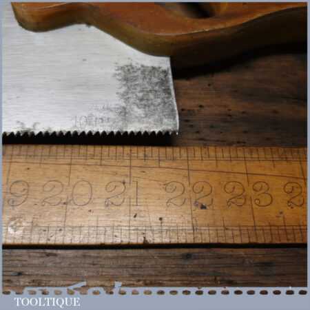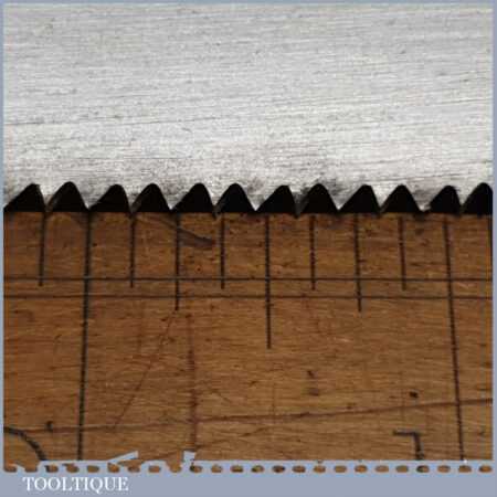 The saw has been thoroughly cleaned, jointed, resharpened and set by hand so that all the hard work of getting an old vintage saw right has been undertaken. We do this so that the next sharpening is easier and no more than a quick freshen up would be required. Those who are familiar with sharpening will know this is no small job and requires skill, effort and time to achieve good results.