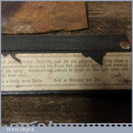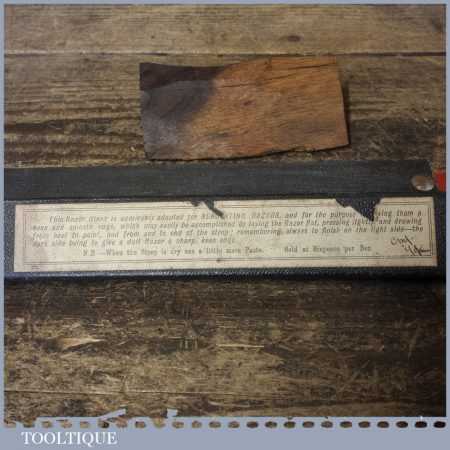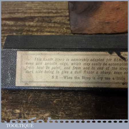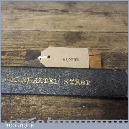 Vintage barber’s beechwood “Celebrated” cut throat razor abrasive sharpening strop with original cover and in good used condition.