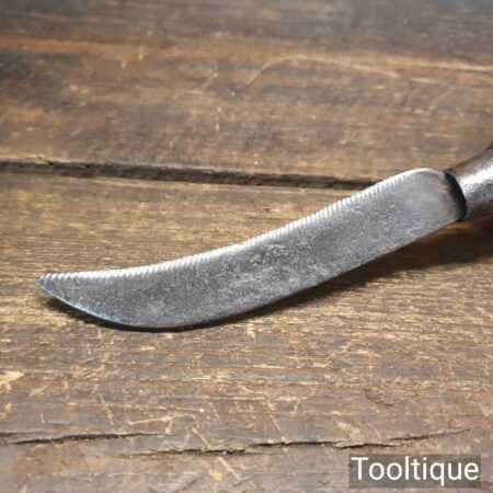 Vintage basket weavers serrated curved knife stamped ‘H1’ made in Sheffield with beechwood handle, in good sharp used condition.