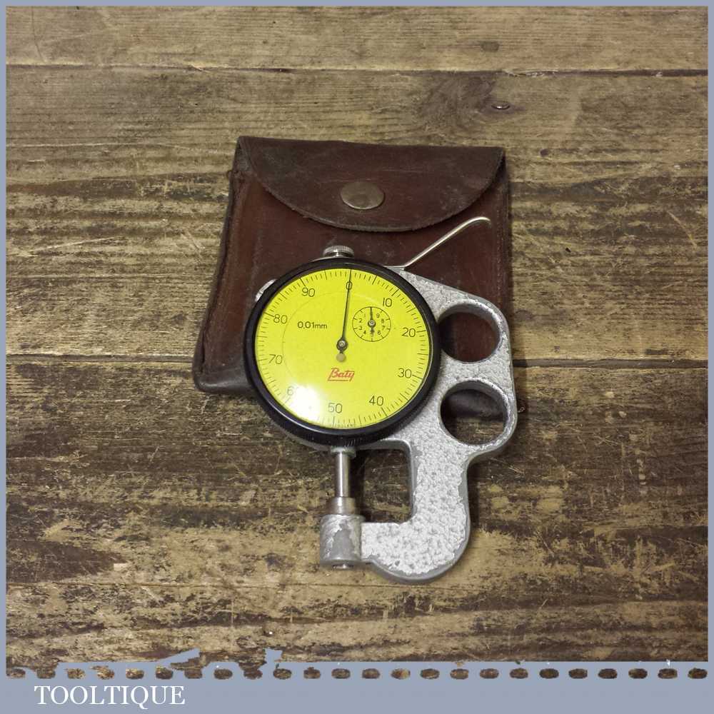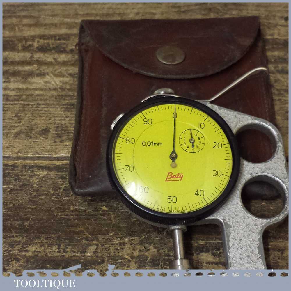 Vintage Baty hand micrometer in a leather pouch and in good used condition.
