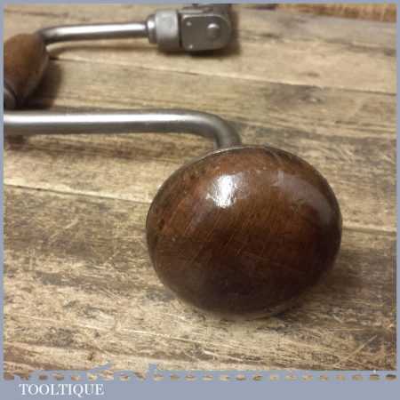 Vintage B&B carpenters ratchet brace with wooden handles and a 10” swing, marked with broad arrow and dated 1952, refurbished ready for use.