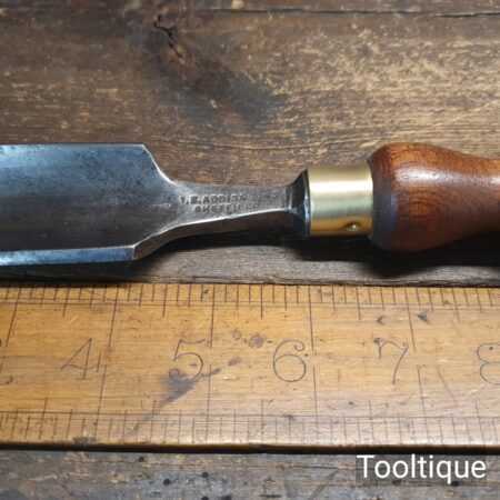 Vintage beautiful J.B. Addis & Sons carpenter’s 1⁷⁄₁₆” gouge chisel mahogany London pattern handle in good used condition, fully refurbished sharpened and honed ready for use.