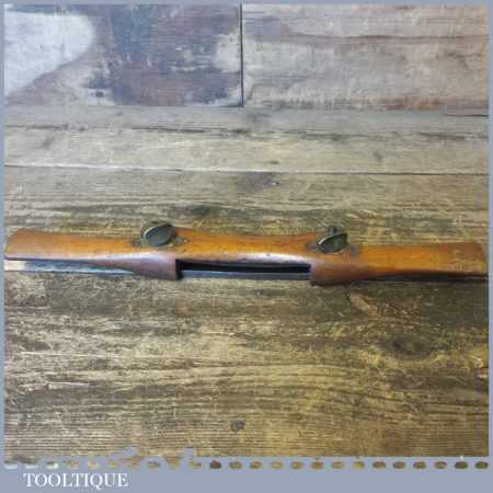 Vintage beechwood adjustable spokeshave with brass screw adjusters and faceplate, in good used condition.