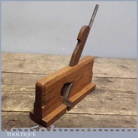 Vintage Beech T shaped rabbet plane with compassed sole and in good overall condition. It measures approx 6” long and 1 7/16” wide.