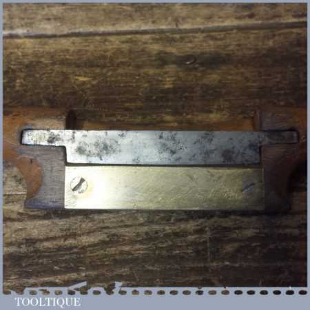 Vintage beech wood & brass spokeshave in good used condition. Note: the tool looks to have a broad arrow marking.