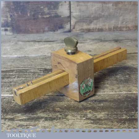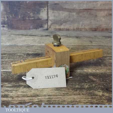 Vintage beechwood and brass mortice gauge, fully refurbished and all parts move freely.