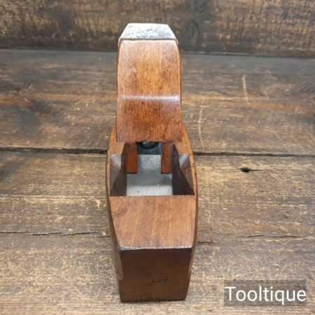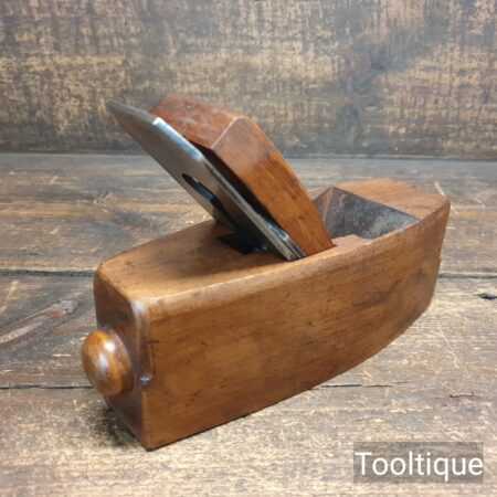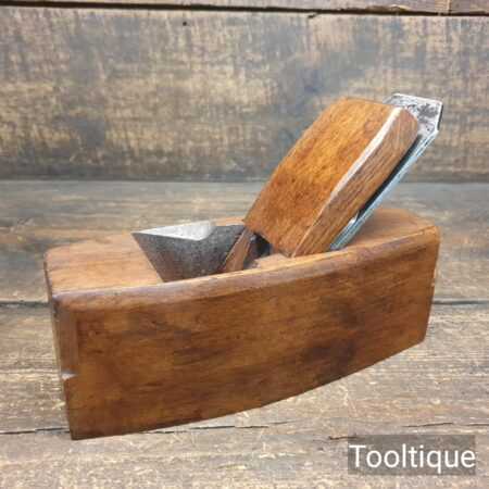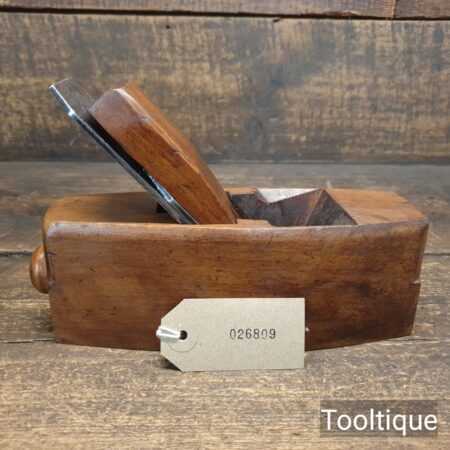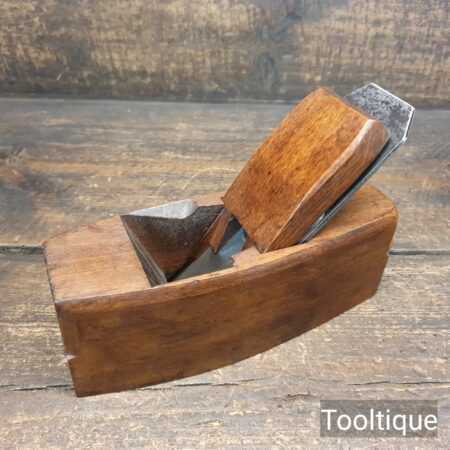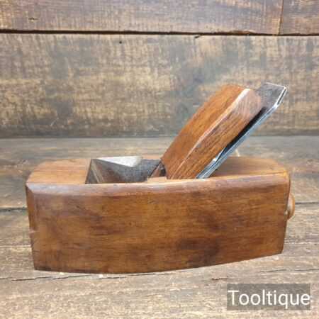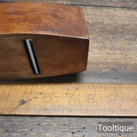 Vintage beechwood coffin shaped smoothing plane measuring 7 ¾” in total length with rear strike button, in good used condition. Note: This plane has been lapped flat and the iron and chip breaker have been refurbished and fettled in ready for use.